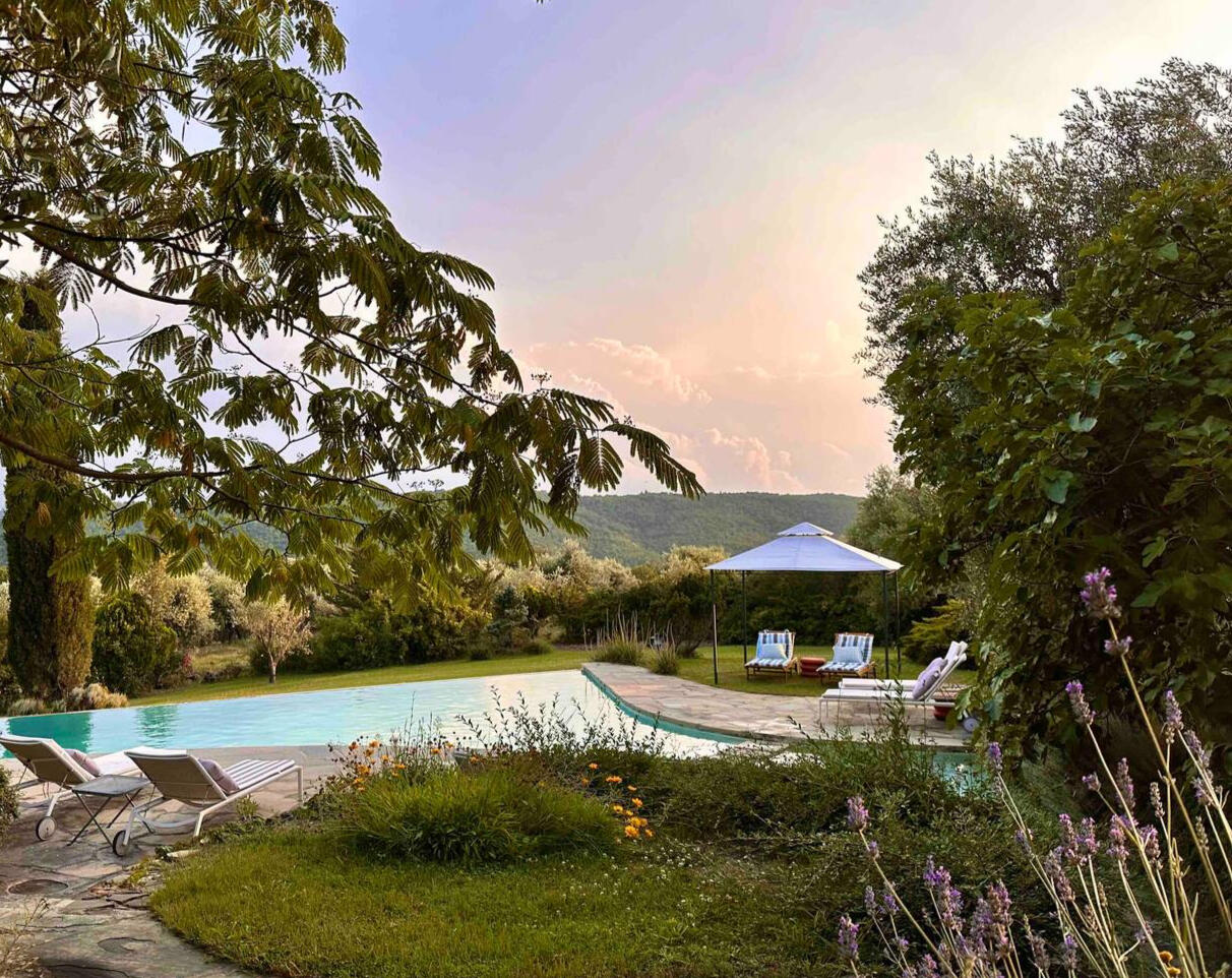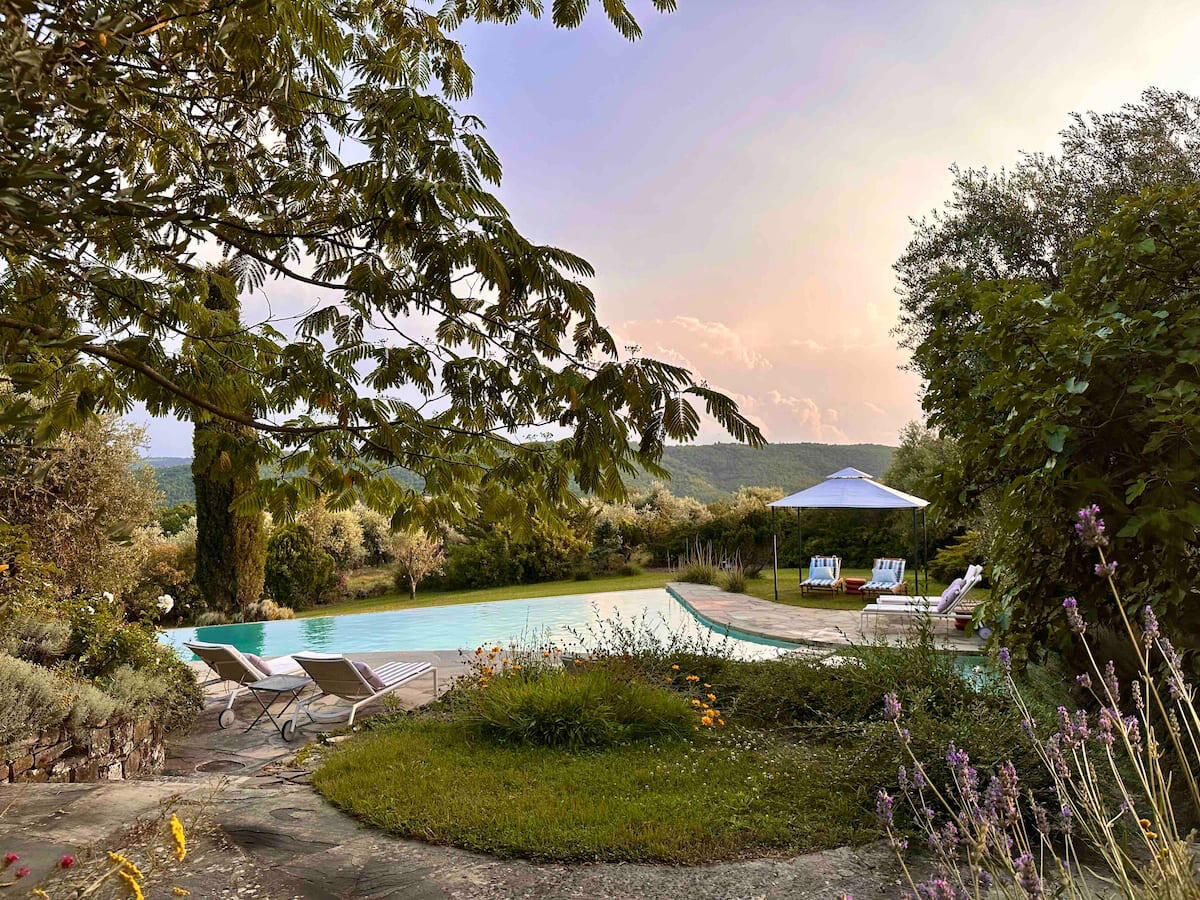 Stone walls, fragrant paths of flowering wisteria and lemon trees, the quiet waters of a panoramic pool overlooking green hills — and cool verandas where summer dinners stretch into starry nights.A place to live the Tuscan dream.